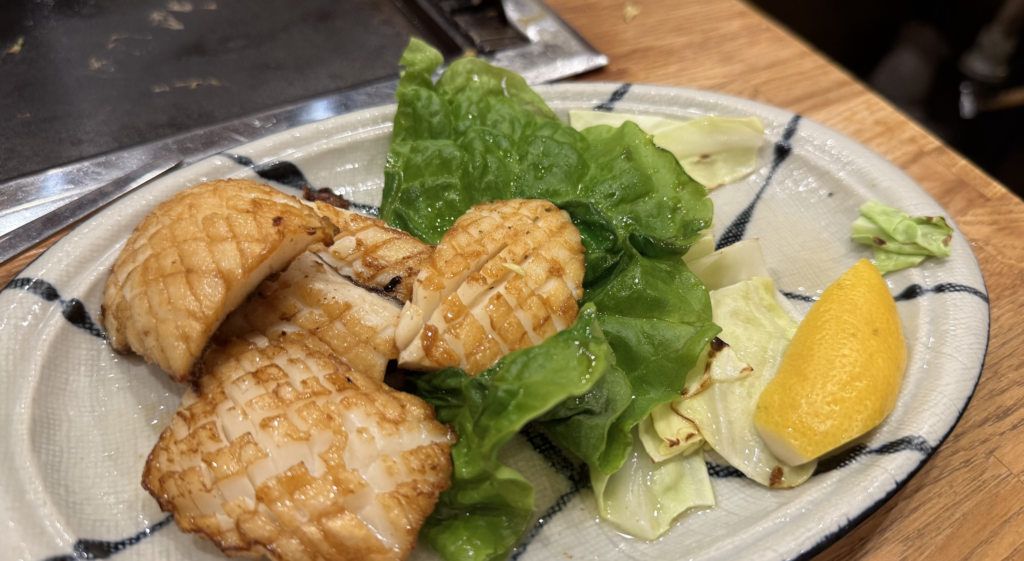 Okaru offers a variety of okonomiyaki options featuring pork, seafood, shrimp, squid, or combinations of ingredients. Menus typically include photos or English descriptions, making it easy to point to what appeals to you. If you’re unsure, choosing a mixed okonomiyaki is a great place to start. I not only had the okonomiyaki but I ordered the squid which they sear in front of you and serve up with lemon. It was delicious and a fun experience.